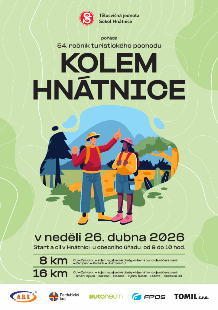 Tělocvičná jednota Sokol Hnátnice Vás zve na 54. ročník turistického pochodu kolem Hnátnice.